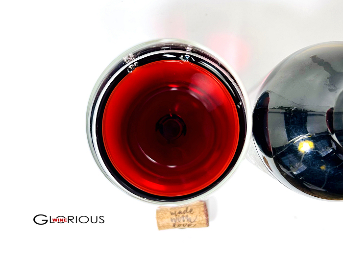 クラスに注いだワインは、透明感を持ちつつも濃いルビーの色あい。