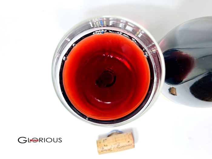 グラスに注ぐと少し濃い目のルビーの色合いが現われます。