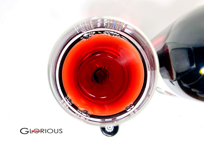 グラスに注いだワインの色合いは、透明感のあるルビー色。